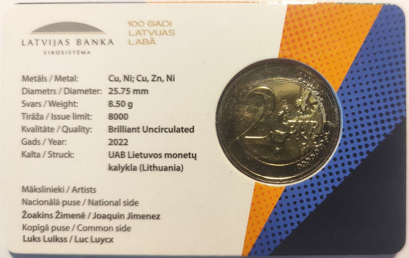 Латвия 2 евро 2022 «Финансовая грамотность» / Latvia 2 euro 2022 «Financial literacy»