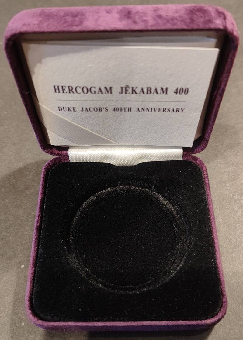 Коробочка от монеты 1 lats 2010 "Hercogam Jēkabam 400" (есть сертификат, без капсулы).