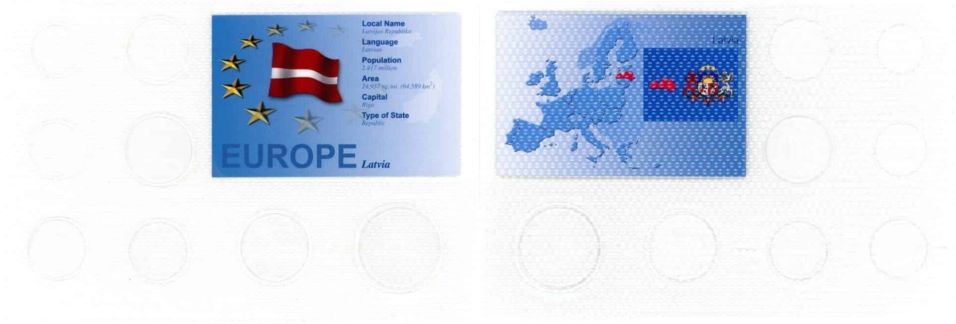 Пустой набор от Латвийских доевровых монет (с пластиком для монет) - 1 €