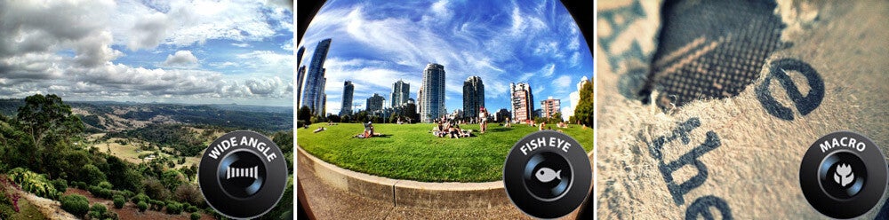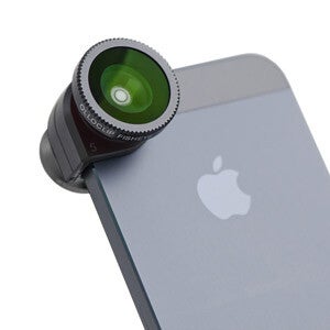 Olloclip для iPhone 5/5S с тремя объективами (Б/У): макро 10Х, широкоугольный 0.67Х (устанавливается поверх макро) и «рыбий глаз» 180°. Имеется небольшая трещина, не влияющая на работу.