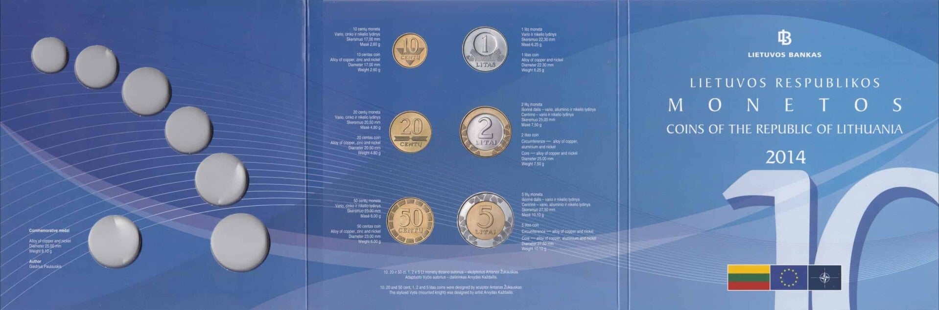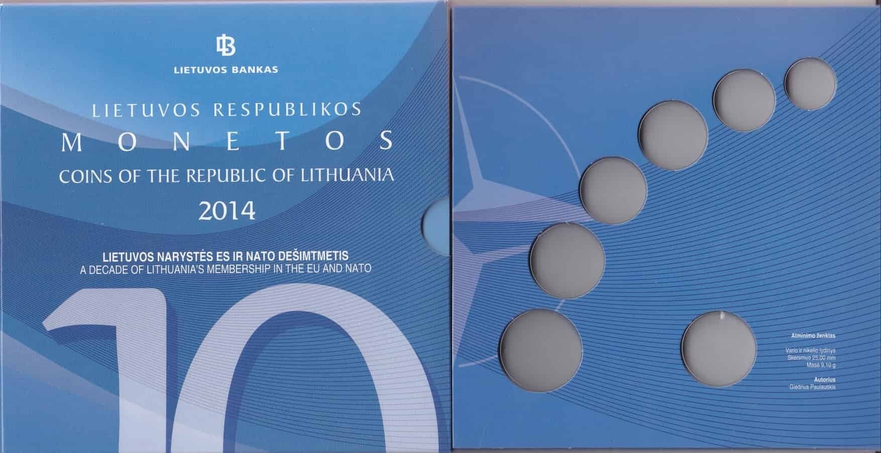 Пустой набор Банка Литвы 2014 года (с пластиком для монет) - 2 €