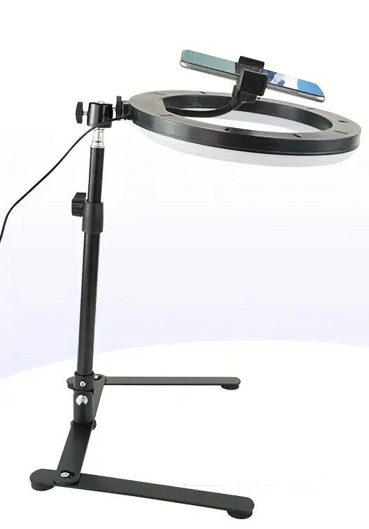 Настраиваемый штатив с держателем для телефона и многофункциональной USB LED-подсветкой. С регулировкой яркости и несколькими режимами освещения.