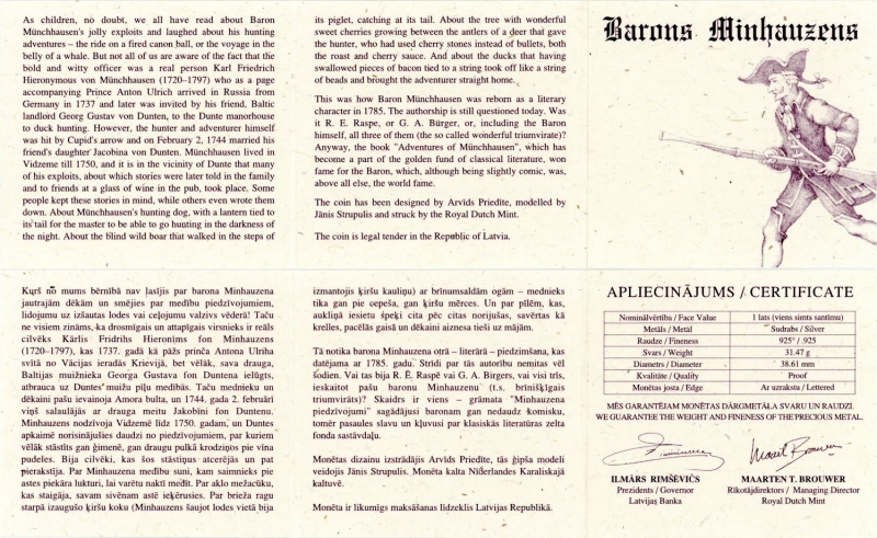Сертификат для монеты 1 lats 2005 "Barons Minhauzens" (Есть 3 шт.) - 15 €