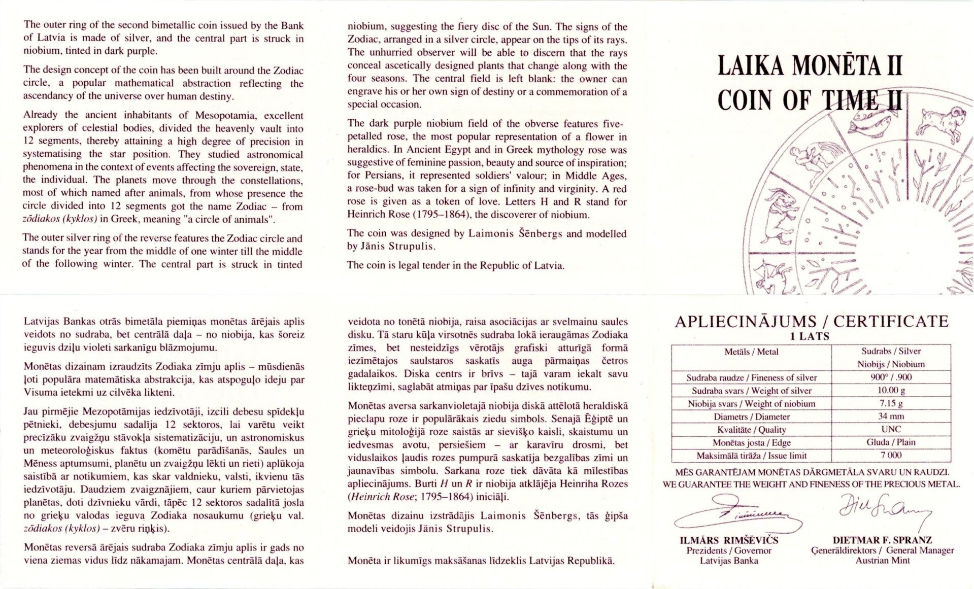 Сертификат для монеты 1 lats 2002 "Likteņa monēta" (Есть 2 шт.) - 20 €